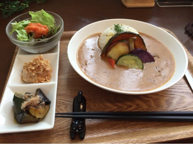 2016-11-28 「くろねこ舎」でランチ グルメ 柄にもなく清水町のお洒落なカフェに行ってきました 店内中央のカウンターには本がたくさんありました とろとろ煮込んだ都萬牛スジ肉のカレーとベジセット 大盛りで よく煮込まれたマイルドなカレー お上品な大盛りでした サラダに、マッシュポテト?、揚げ茄子 カフェ何たら、、、、、 至る所にくろねこが 店員さんの笑顔が印象的でした くろねこ舎 宮崎県宮崎市清水3丁目11−18 0985-33-9927 詳しくは https://ja-jp.facebook.com/cafe.kuronekosya/