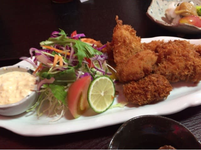2017-09-30 「粋孝」でランチ グルメ 川南町と都農町の町境に、激盛りの店があるときいていってきました。 団体の予約が入っていて、30分ほど待たされることに、、、、 刺身定食は提供が早いようで、後から来たお客さんにさっさと出されていたりして ミックスフライ定食 揚げたてあつあつ フライがてんこ盛り ふかの湯引きもついてきました 急いでご飯をよそった後が、、、お代わりは自重しました 30分も待った甲斐がありましたっす、おなか満腹っす、、 粋孝 宮城県児湯郡 川南町川南20245 0983-27-4427 店内喫煙可