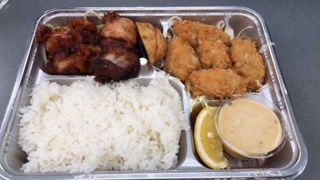 2018-04-27 「うまか一番亭」のお弁当 グルメ ひさしぶりに買ってきてもらいました カキフライからあげ弁当 やっちまったなぁ、、、、、 あげあげのてんこ盛り 晩ご飯不要になっちゃいました 寄る年波には勝てぬ、、、ということでした、、、 達筆 うまか一番亭 宮崎県宮崎市大塚町 宮崎県宮崎市大塚町天神後2670 0985-53-0970