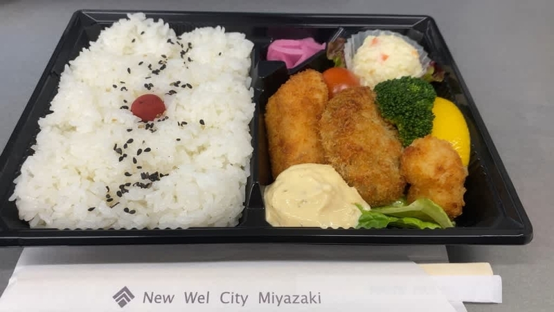 2021-01-26 「ニューウエルシティー宮崎」のお弁当 グルメ 最近は、事務所に缶詰の日々、、、、、、、、 ミックスフライ弁当 レギュラーメニューに定着 レモンも添えられています 付け合わせにポテトサラダ レンチンするの忘れて下たぁ、、、、ごちそうさまランチ