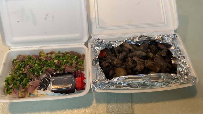 いつもの、炙り刺し850円に、もも焼き大1600円